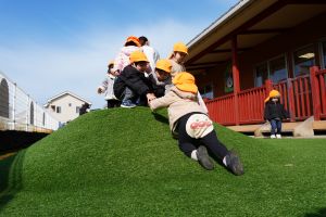 戸外遊びを楽しんでいます(2歳児 りんご組、1歳児 いちご組) きららおひさまこども園