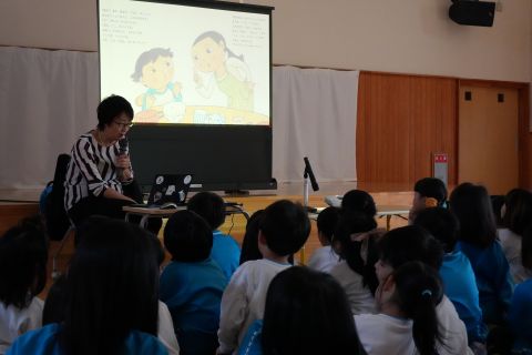 10月31日(金)、上級食育指導士であり「おむすび舎」代表の霜鳥英梨先生をお招きし、こあら組・きりん組の子どもたちに向けて「食べ物と体の関係」についてお話しいただきました。エプロンシアターでは、「食べたものは体の中でどうなるのかな?」というテーマで楽しく学びました。さらに、よく噛んで唾液を出すことの大切さについても、わかりやすく教えていただきました。